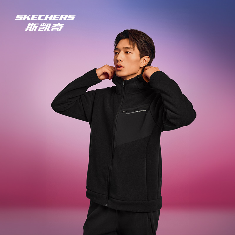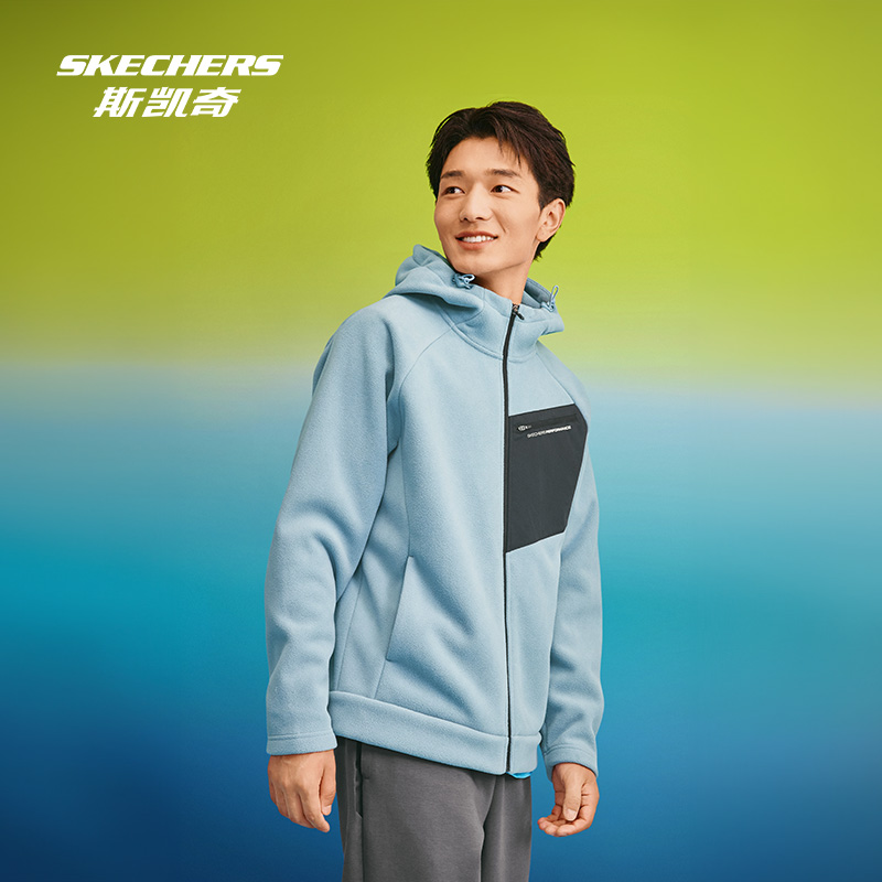 斯凯奇冬季男子摇粒绒外套保温柔软舒适亲肤简约时尚百搭连帽上衣