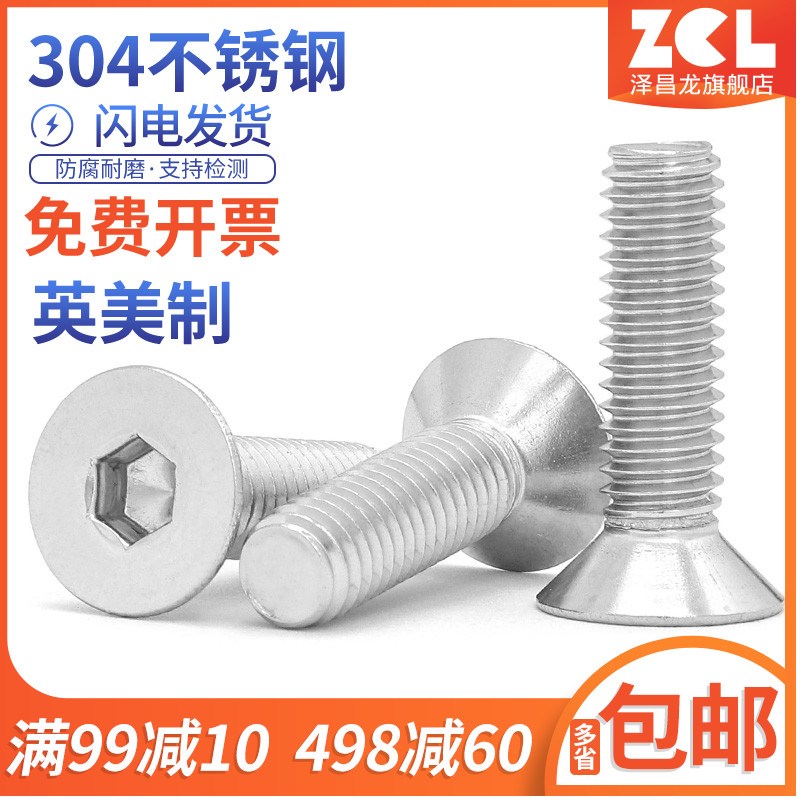 2# 4# 6# 8# 10# 304不锈钢美制沉头内六角螺丝平头内六角螺钉