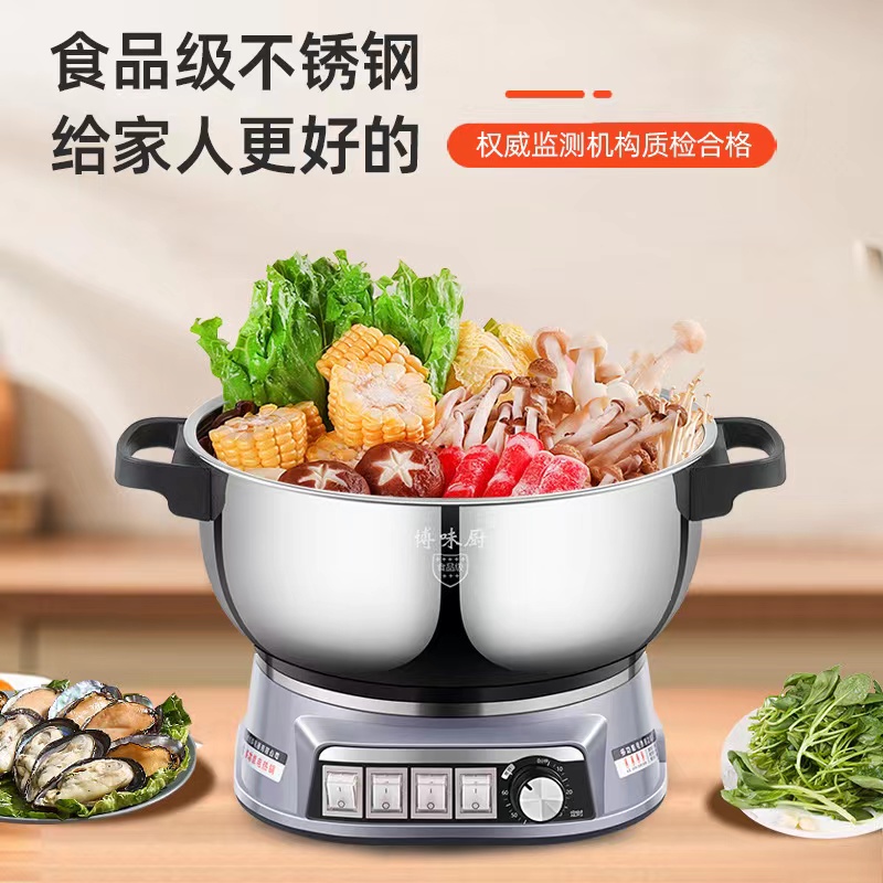 多功能料理锅炒锅家用电火锅蒸锅电炒锅蒸煮一体锅定时电锅