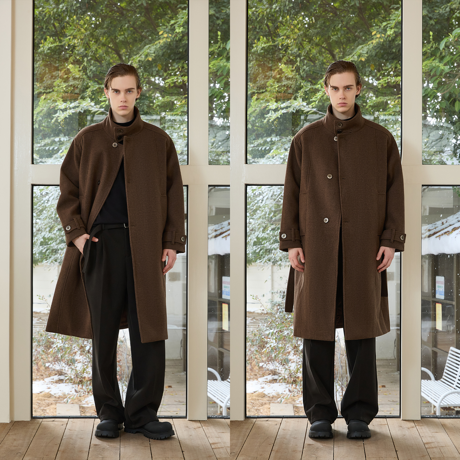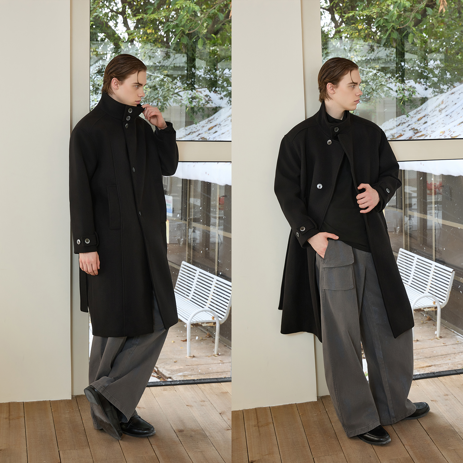 PMET 多形态翻领毛呢大衣 高克重夹棉秋冬双面呢长款立领风衣外套