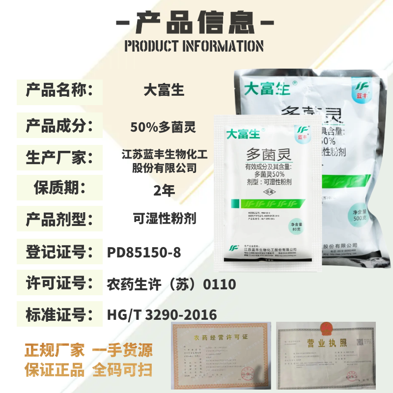 大富生 50%多菌灵赤霉病纹枯病叶斑病菌核病倒秧稻瘟病农药杀菌剂