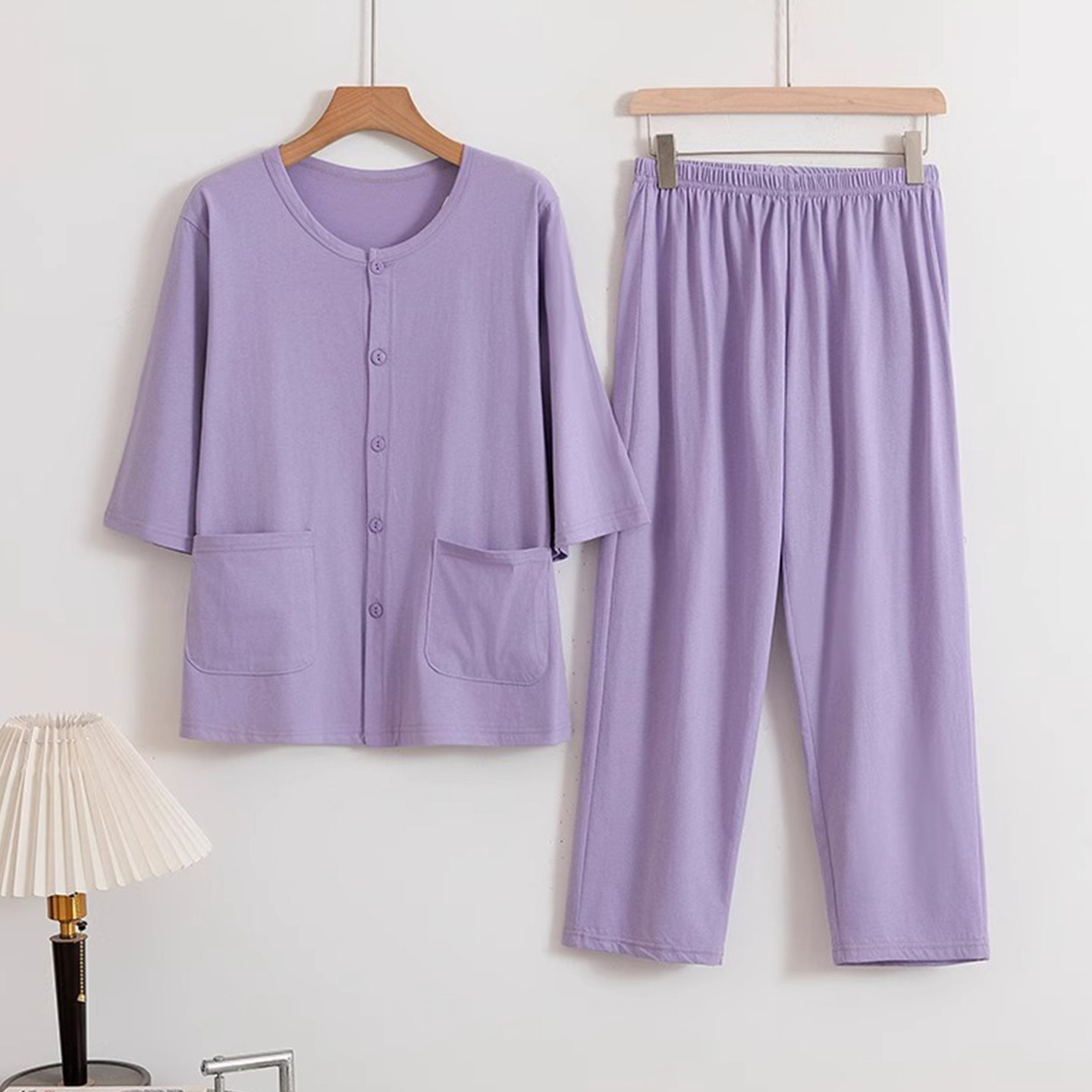 中老年全棉开衫睡衣套装