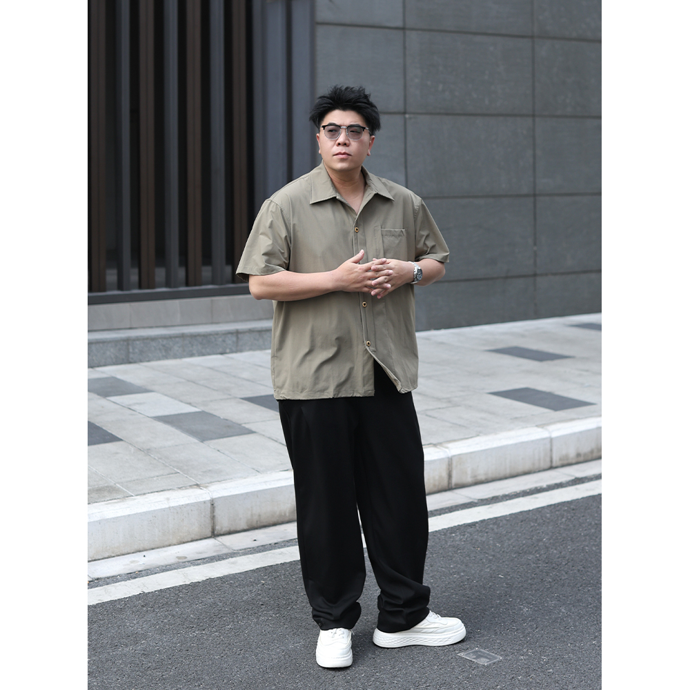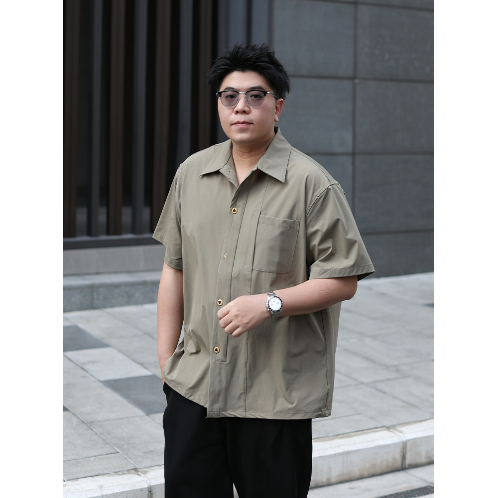 路人社基础款休闲衬衫男短袖夏季复古纯色衬衣大码男装时尚潮流男