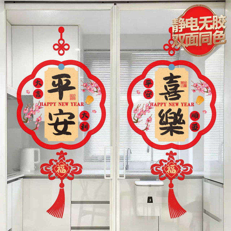 新年室内装饰氛围窗花厨房玻璃静电门贴春节过年中式福字贴纸窗贴