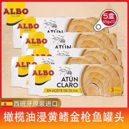 Albo西班牙进口橄榄油浸黄鳍金枪鱼罐头195g三连罐280吞拿鱼即食