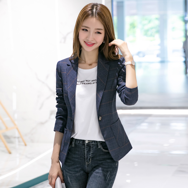 格子小西装女外套韩版2025春秋新款百搭长袖短款修身职业休闲西服