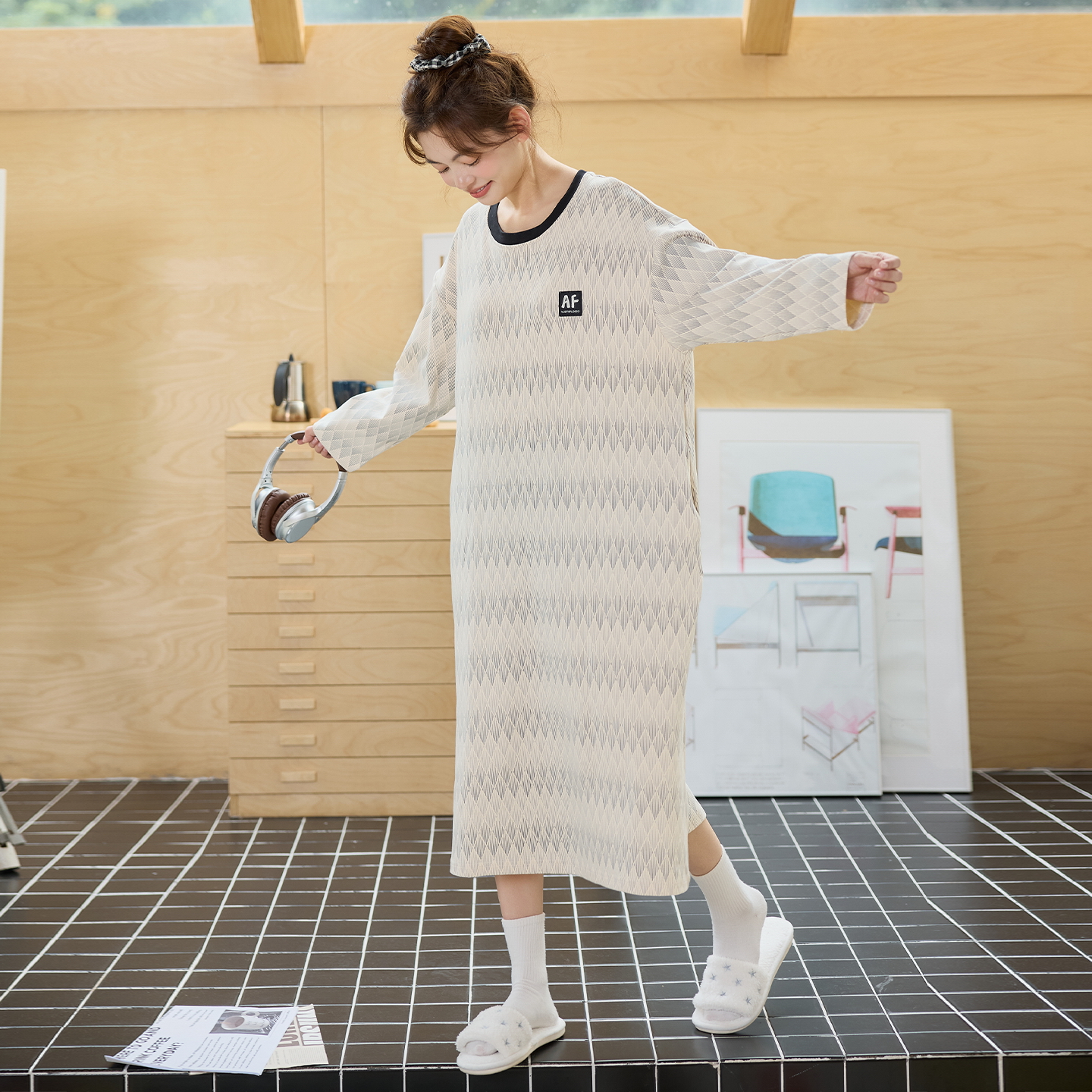2025新款纯棉睡裙女春秋季带胸垫长袖套头睡衣裙时尚可外穿家居服