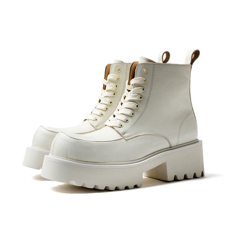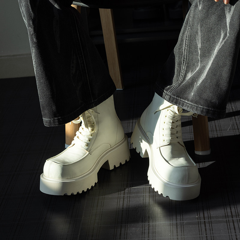 街拍设计款白色大头马丁靴男2025冬新款超酷真皮增高靴子高帮男靴