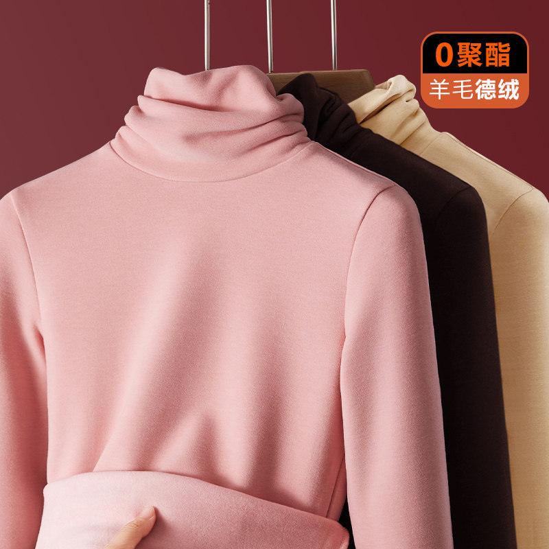 高领堆堆领羊毛蚕丝保暖内衣女加厚加绒秋衣内搭德绒发热打底衫