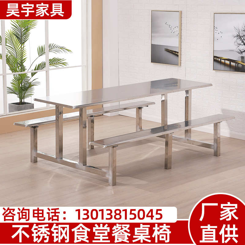 学校食堂餐桌椅组合4人6人位学生员工食堂连体不锈钢快餐桌椅组合