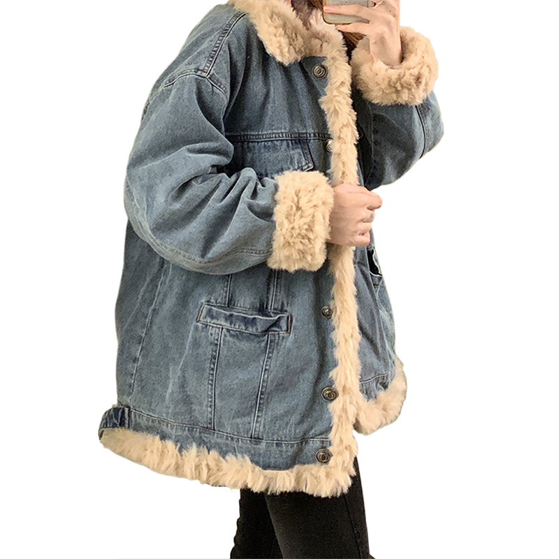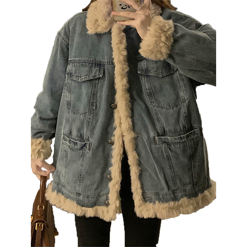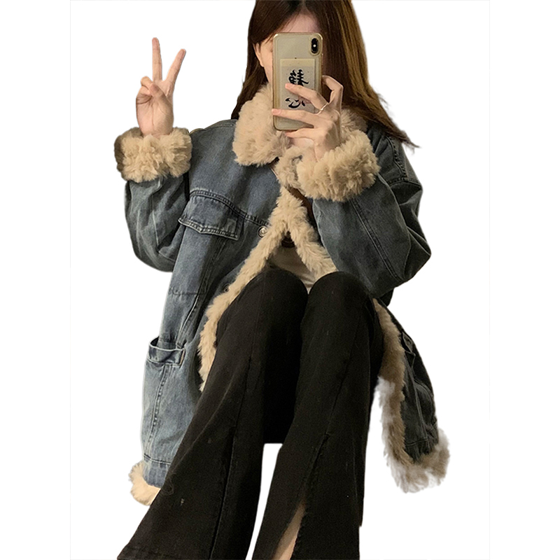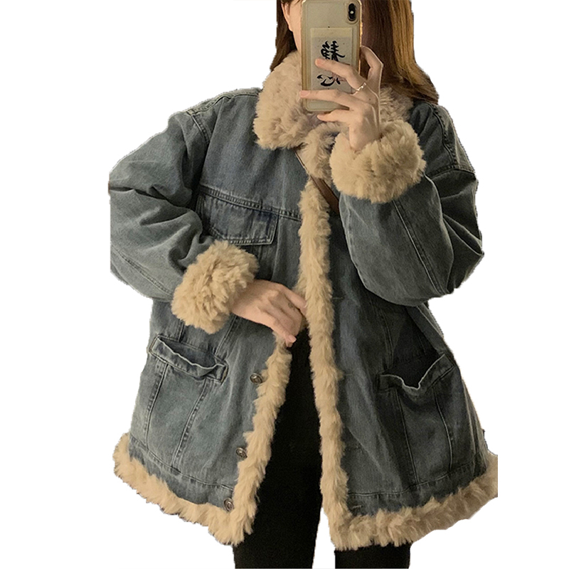 300斤特大码女装羊羔毛保暖加厚牛仔外套女高级感百搭棉服棉袄潮