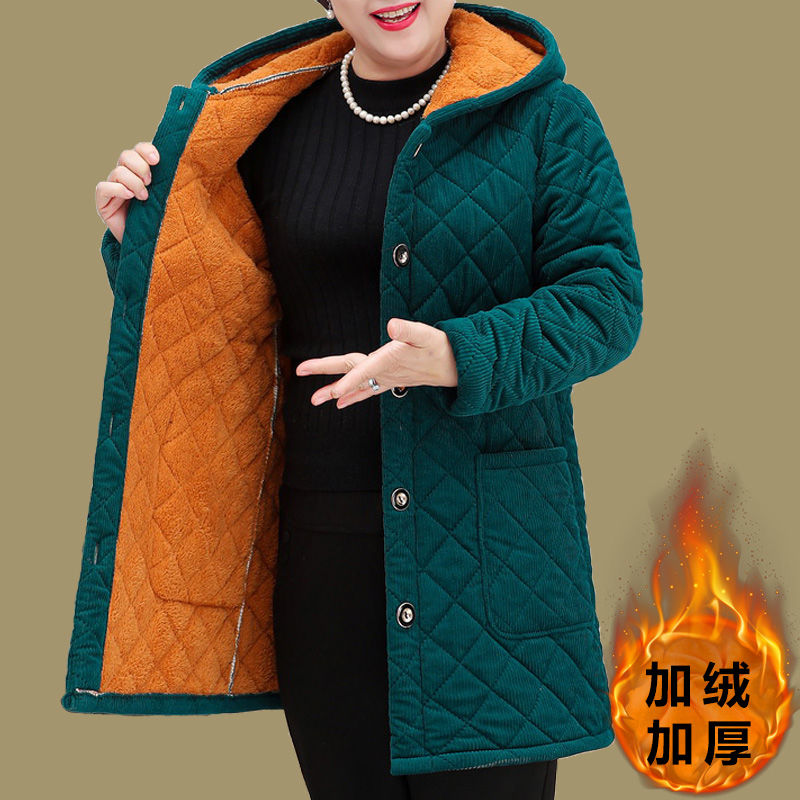 四川省服中老年女冬装妈妈棉服70岁奶奶加绒加厚外套棉袄连帽棉衣