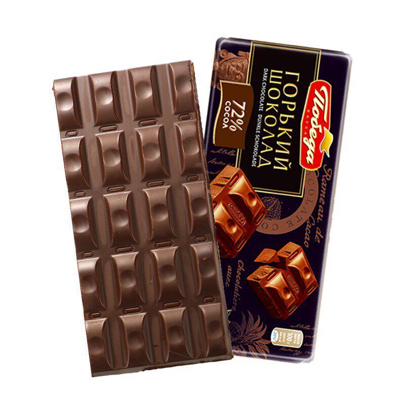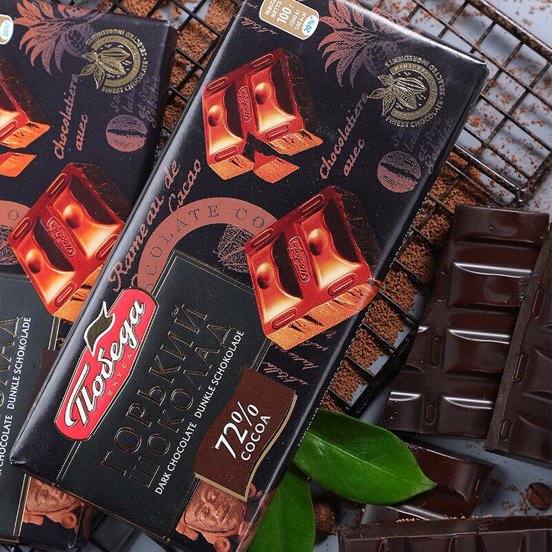 进口俄罗斯黑巧克力胜利72%纯可可脂醇香烘焙节日休闲零食品100g