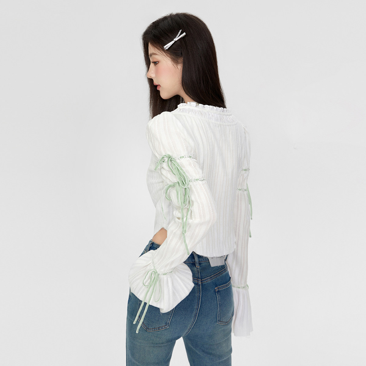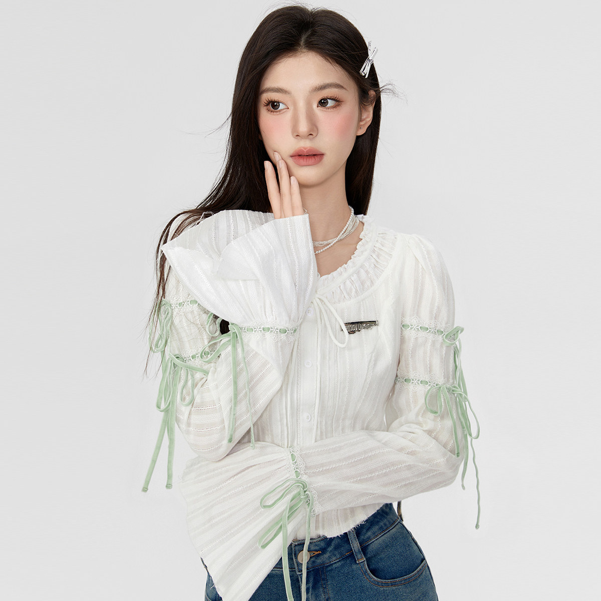 EPTISON长袖衬衫女2025秋季新款短款甜美气质清新别致设计感上衣