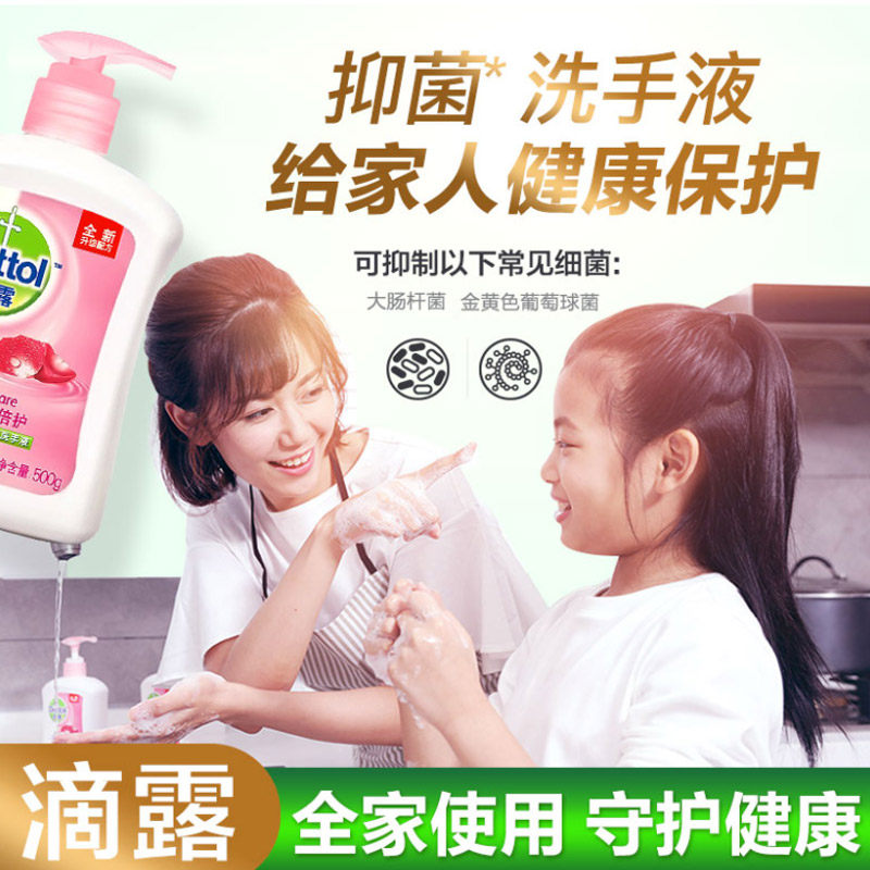 滴露滋润倍护抑菌洗手液500g*2瓶家用儿童消毒杀菌组合装按压瓶