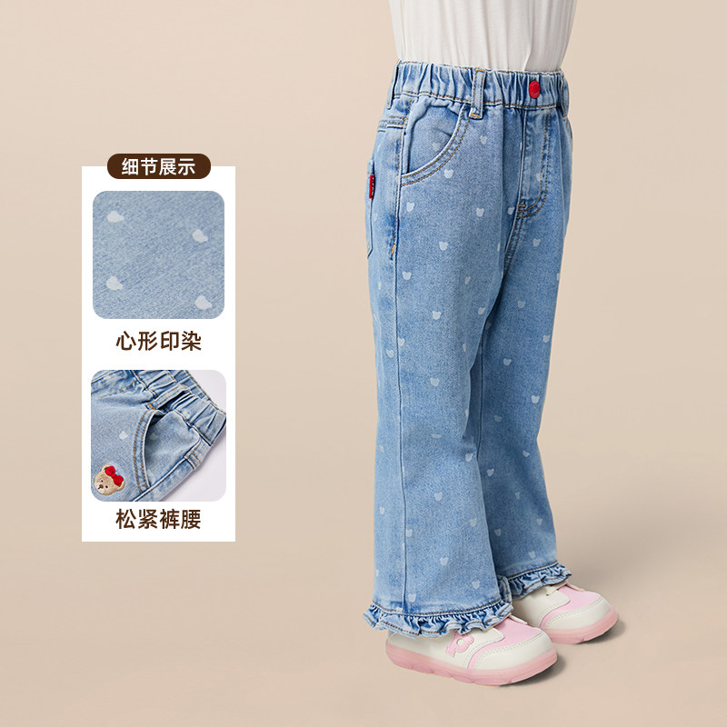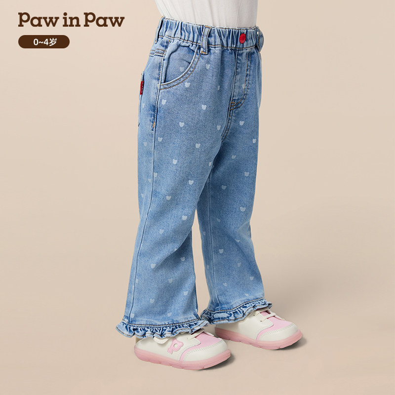 【商场同款】PawinPaw卡通小熊童装25年秋季新款女宝宝牛仔喇叭裤