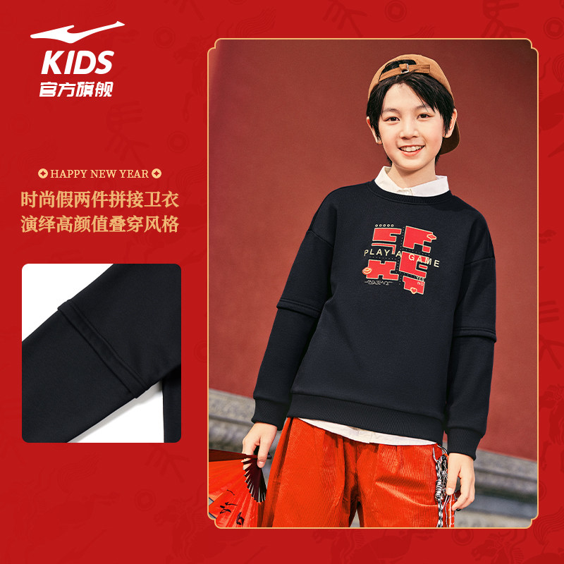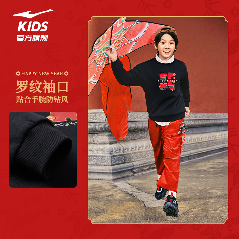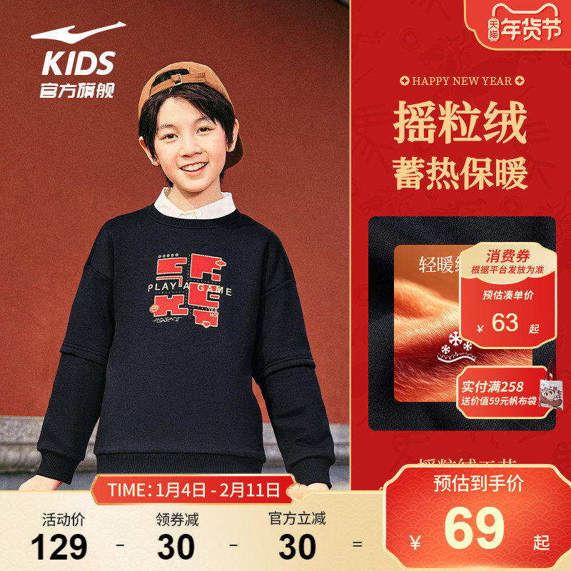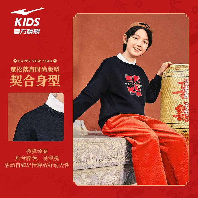 鸿星尔克童装儿童新年卫衣男童2026秋冬款加绒套头衫中大童上衣女