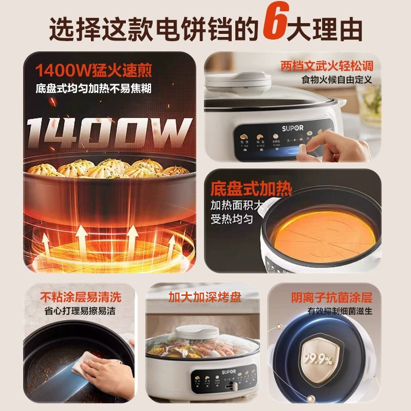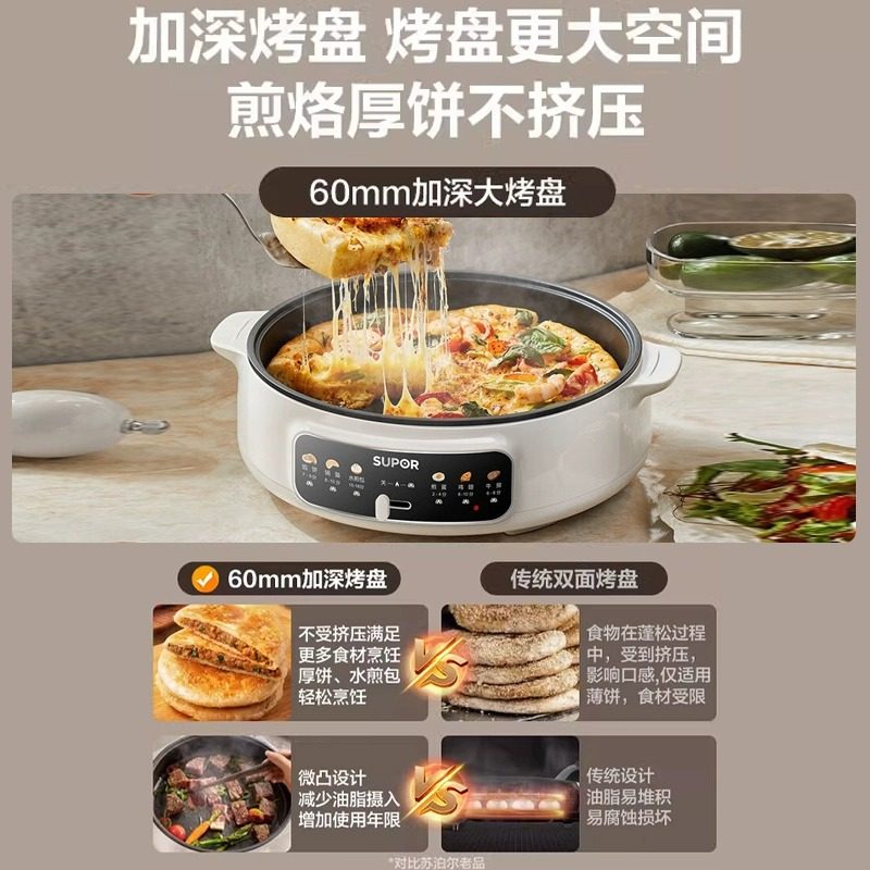 苏泊尔电饼铛电烤盘家用烤肉锅盘不粘煎饼烙饼一体机2024款烹饪机