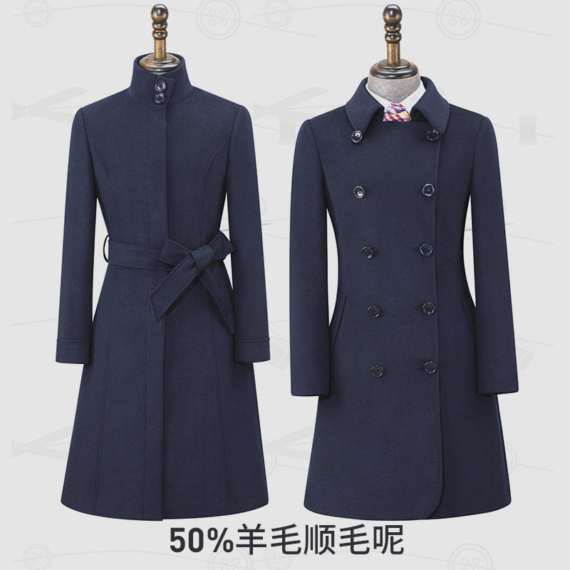 冬季男士毛呢大衣中长款双排扣女士呢子外套加厚商务通勤工作服