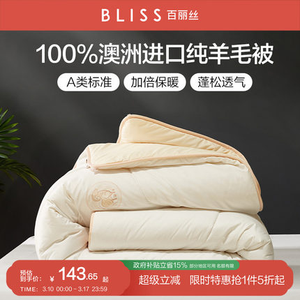 百丽丝家纺澳洲进口羊毛被100纯羊毛冬被A类抗菌阻螨保暖被子被芯