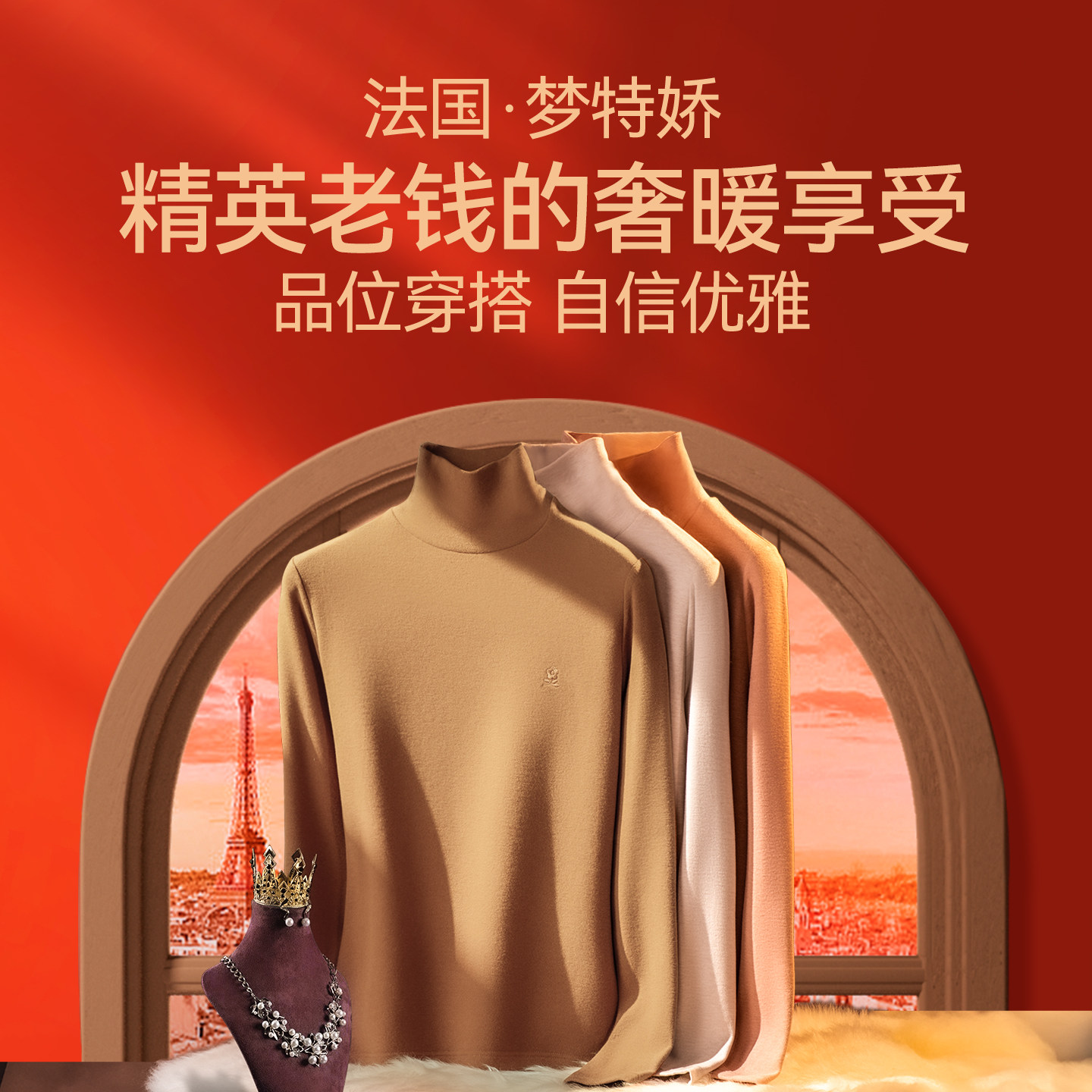 梦特娇羊绒蚕丝高领女保暖衣