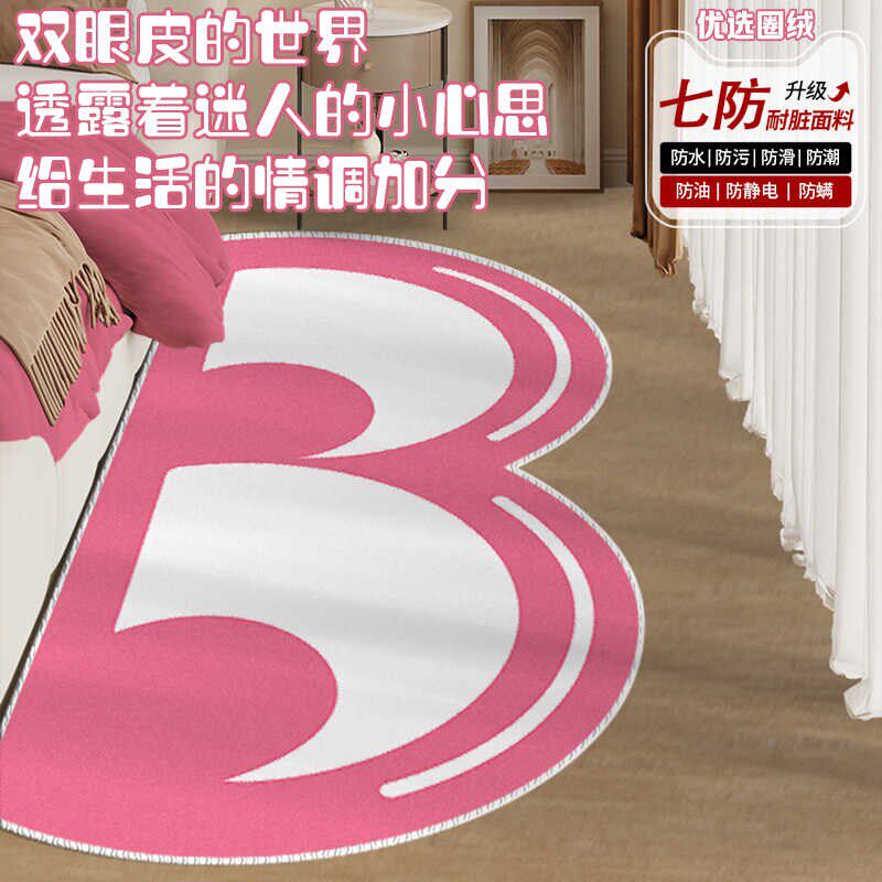 斜着眼卡通可爱少女地毯tufting客厅卧室床边毯吊篮撸猫感大地垫