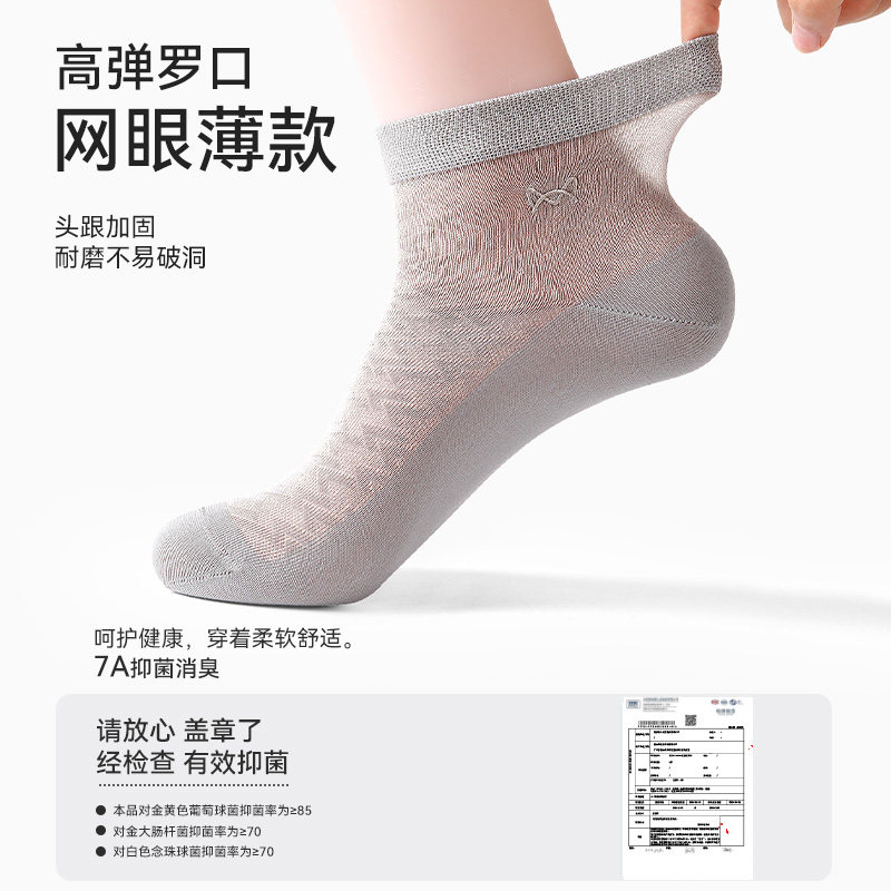 猫人冰丝袜子男士夏季薄款莫代尔网眼透气中筒防臭不起球凉感短袜