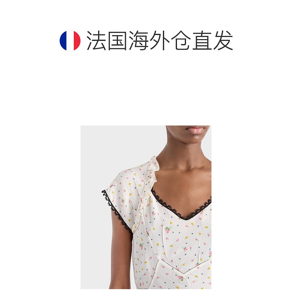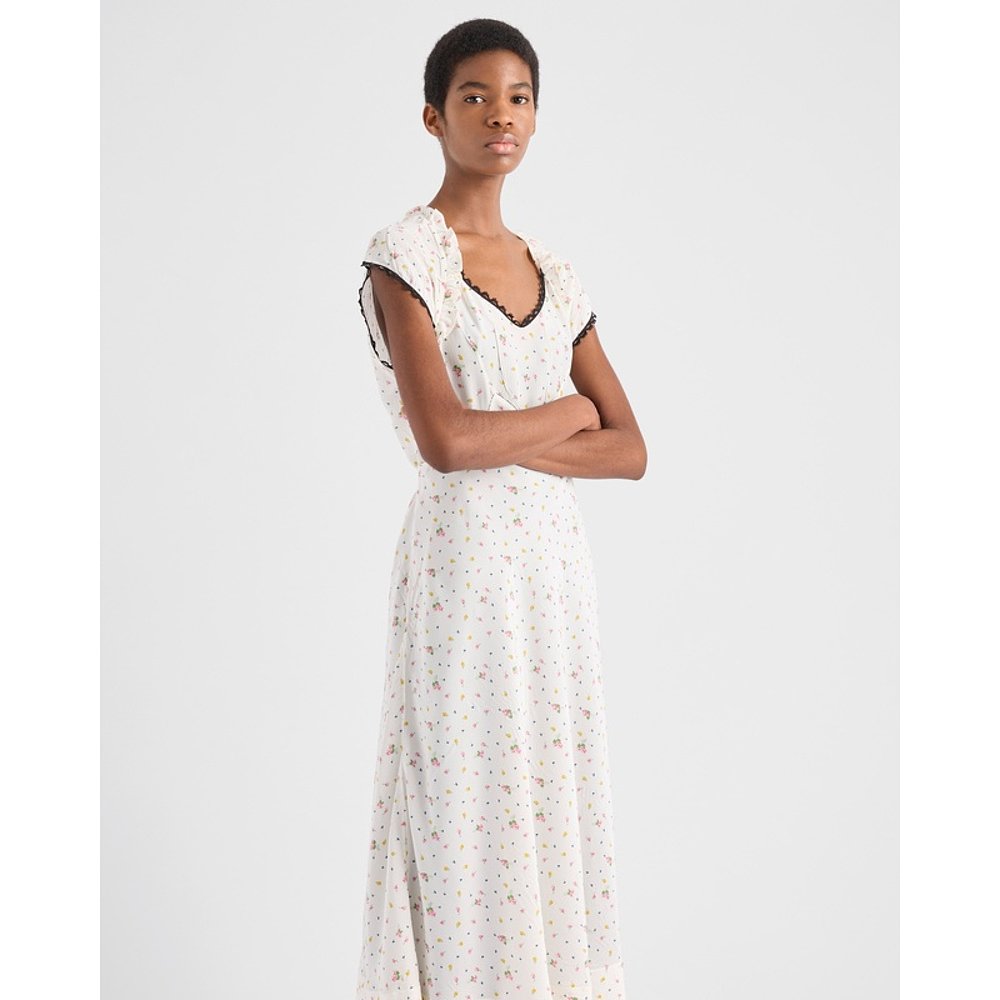自营欧洲直邮Prada普拉达 女士白色桑蚕丝花卉印花短袖连衣裙真丝