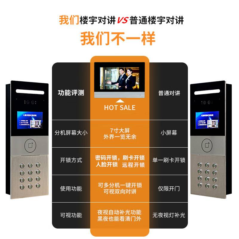 楼宇对讲小区门禁人脸识别高清可视对讲系统智能可视门铃设备套装