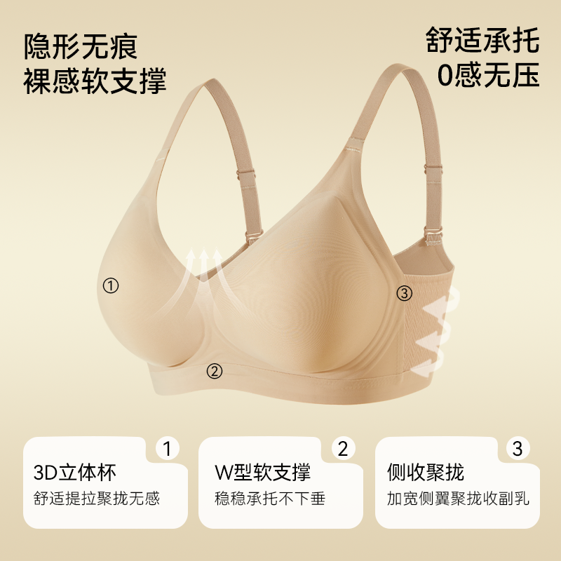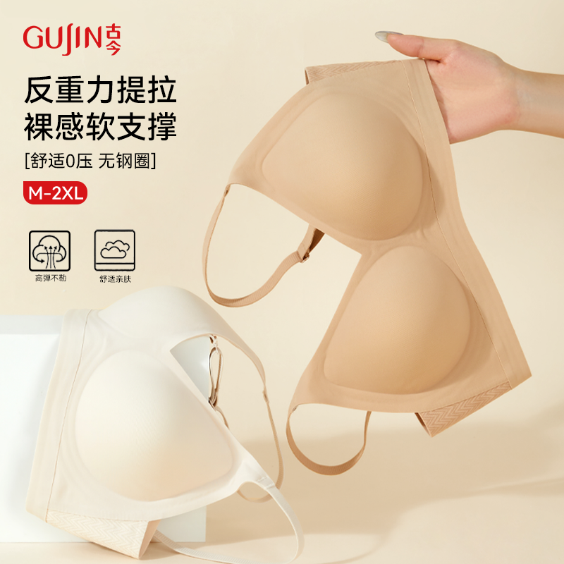 古今无痕内衣女聚拢小胸隐形粉底液无钢圈收副乳防下垂美背文胸罩