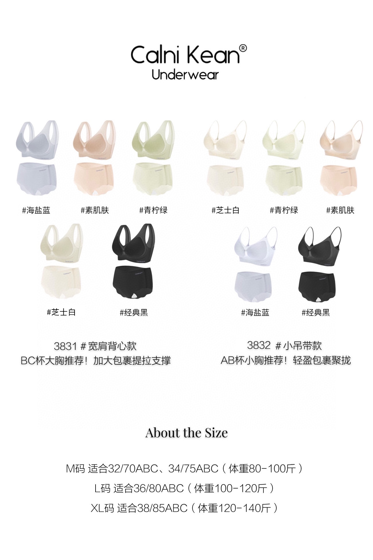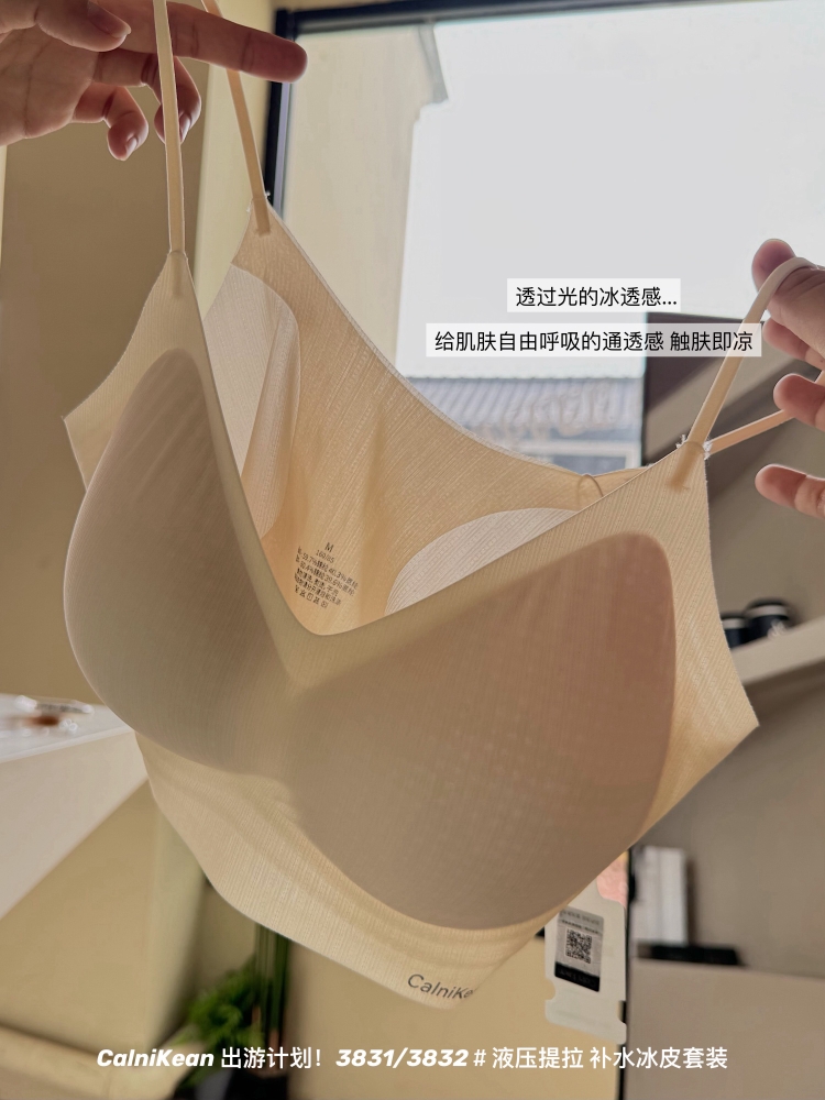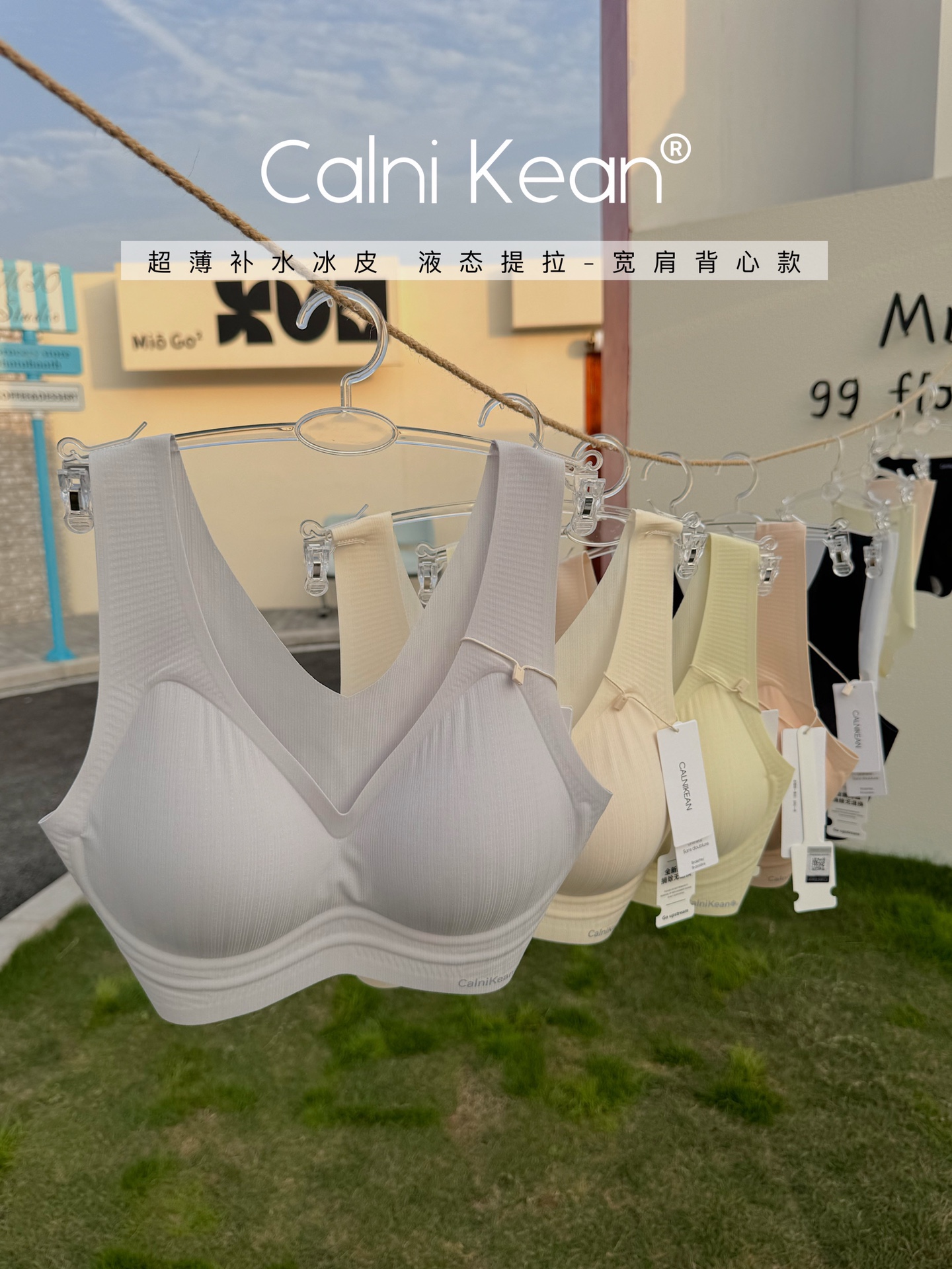 calnikean液态提拉冰皮无痕内衣女固定胸垫超薄大胸显小文胸套装