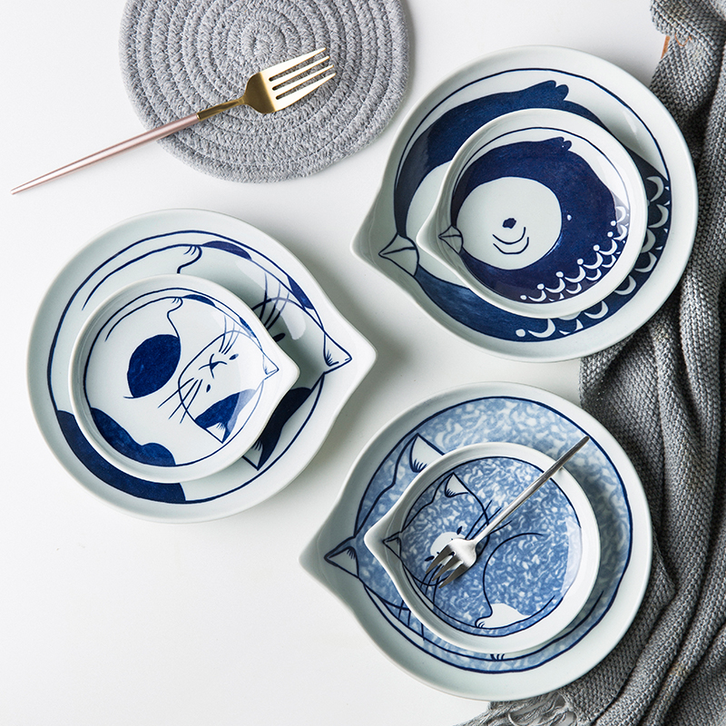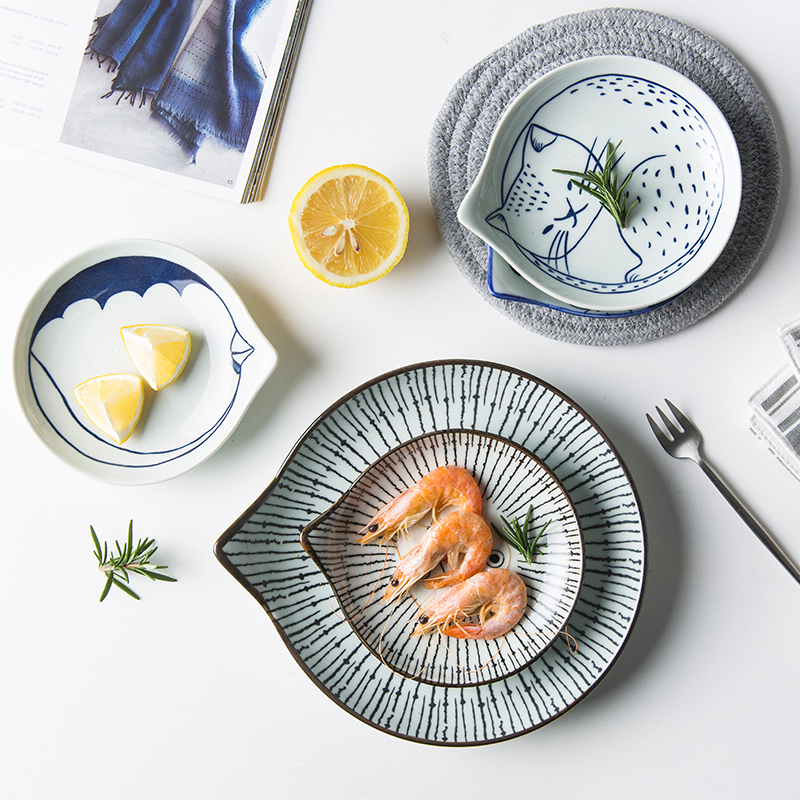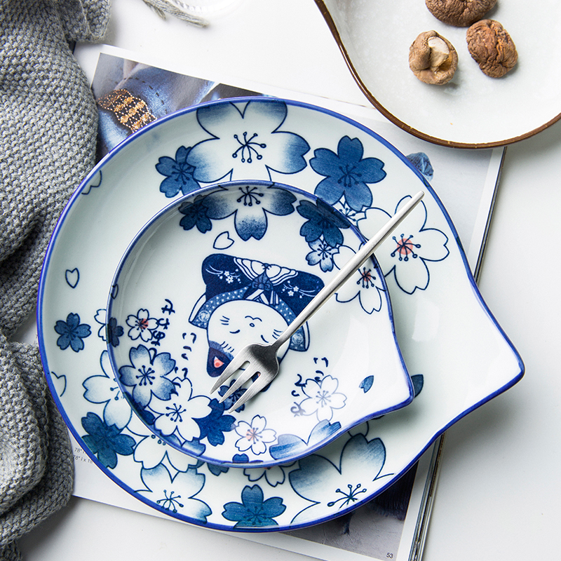 创意日式卡通餐具可爱猫咪陶瓷盘餐厅家用水滴菜盘凉菜点心酱料碟