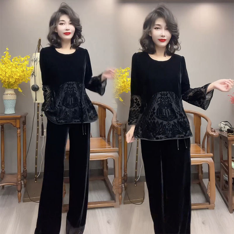 秋季新款丝绒上衣阔腿裤时尚套装
