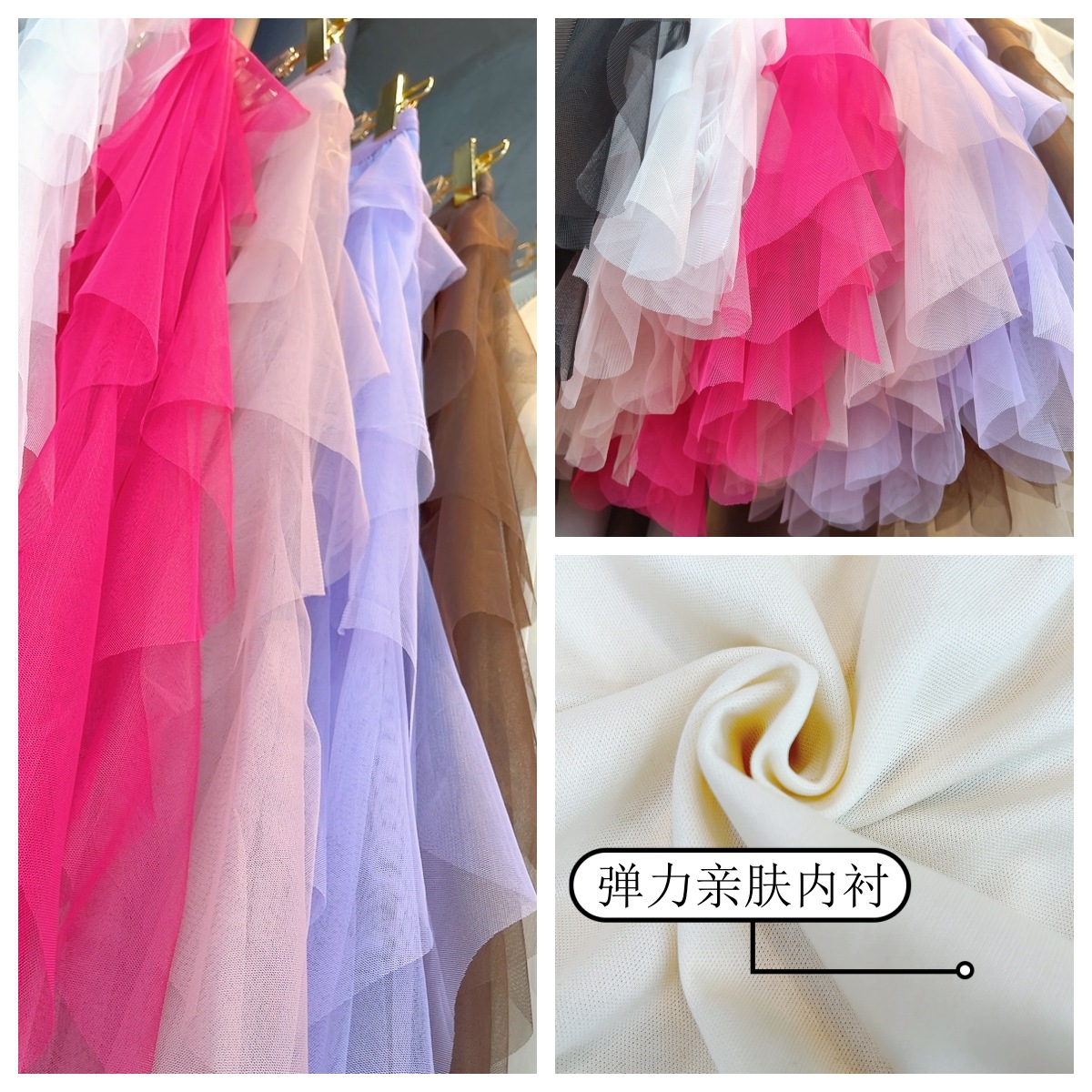 优质!厂家 2023松紧腰时尚百搭显瘦网纱拼接不规则中长款半身裙