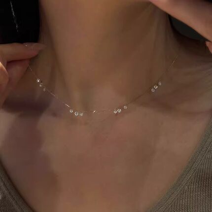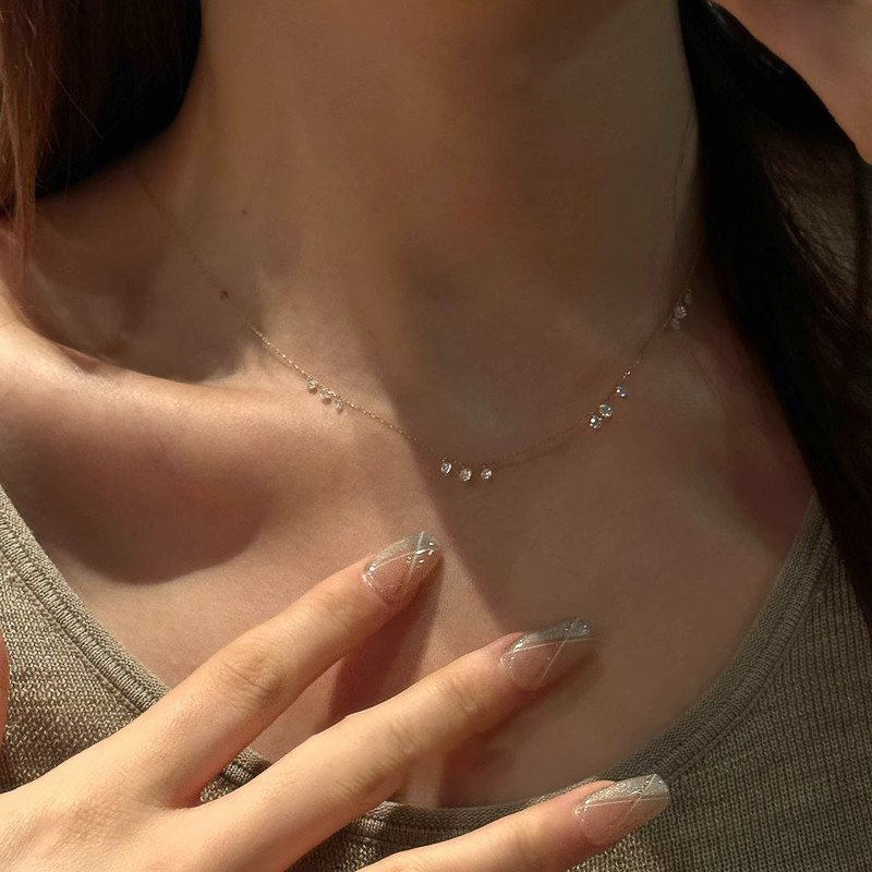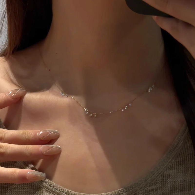s925纯银水滴锆石吊坠金色项链女款轻奢小众精致锁骨链通勤百搭