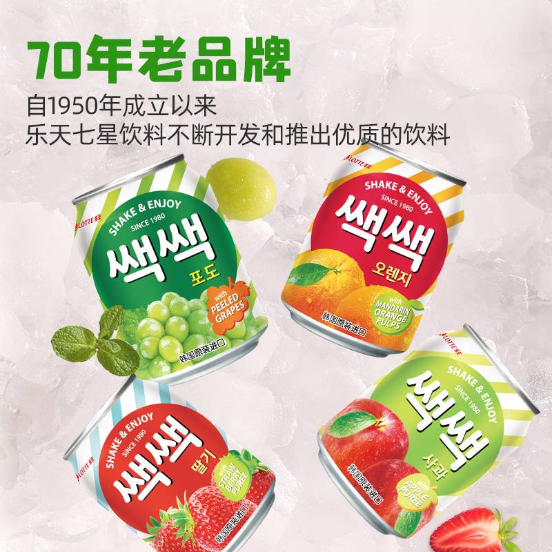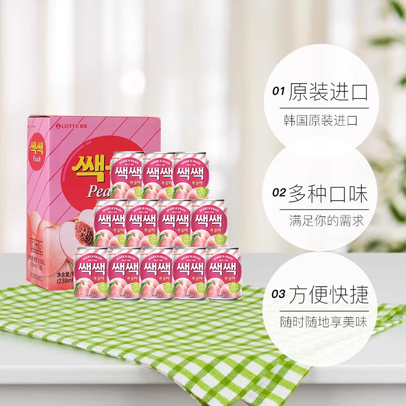 【自营】韩国饮料饮品lotte乐天238mll/罐桃汁果汁果味饮品