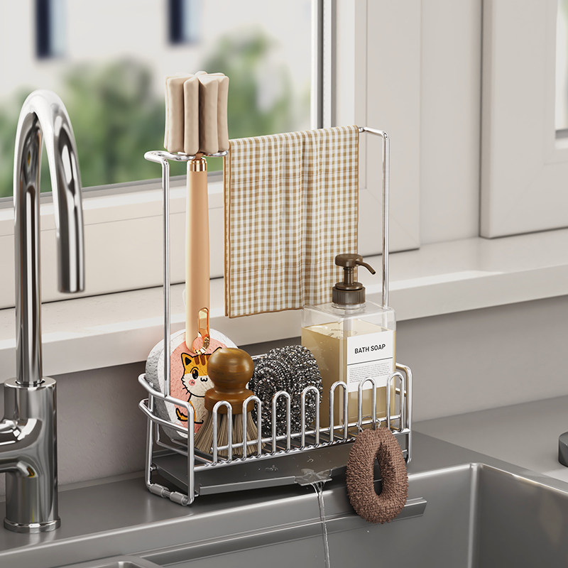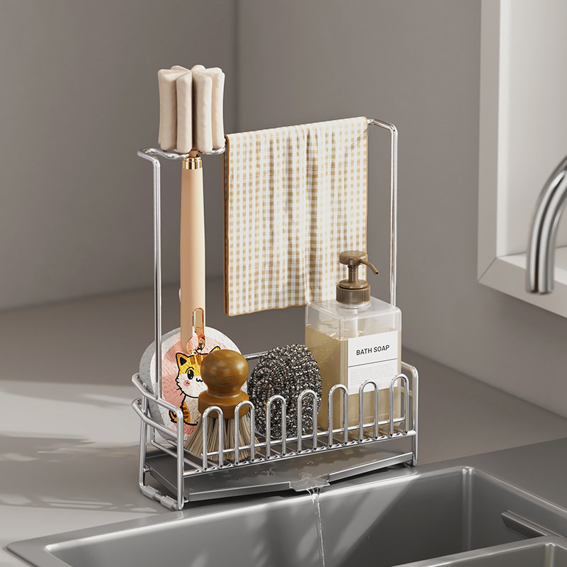 304不锈钢厨房放抹布沥水架洗碗池水槽海绵置物架极窄边小尺寸款