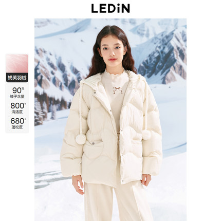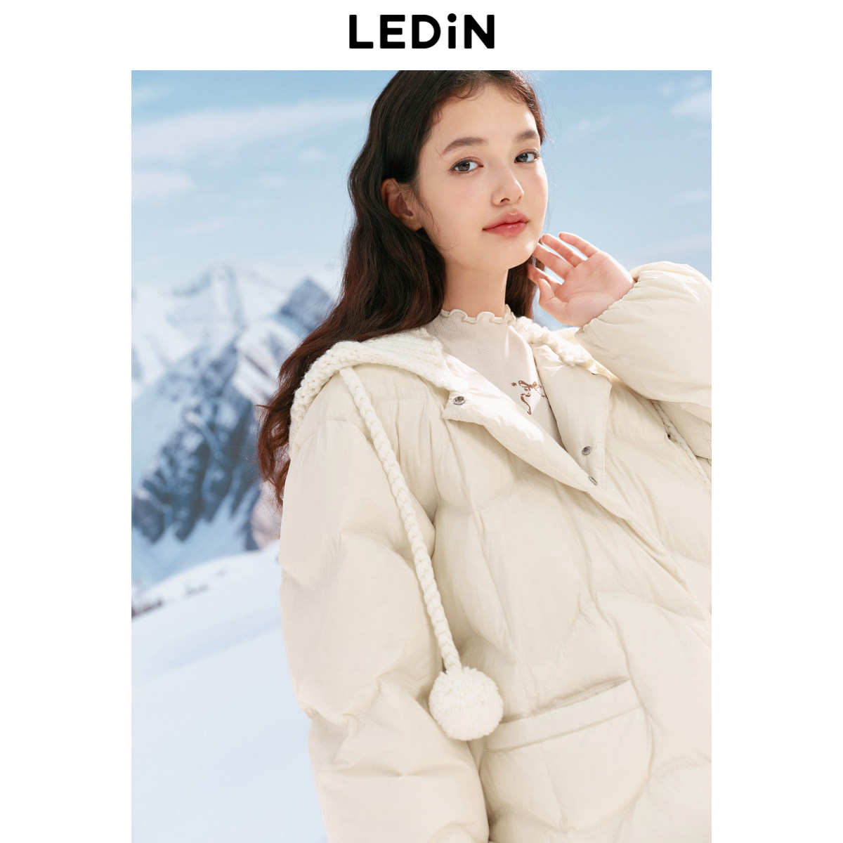 乐町可脱卸线帽面包羽绒服女冬季新款柔软保暖时尚可爱外套