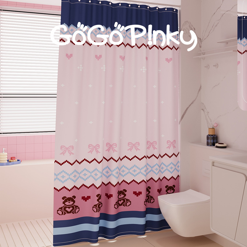 费尔岛浴帘可爱家用防水防霉隔断套装淋浴间门帘卫生间遮挡挂帘