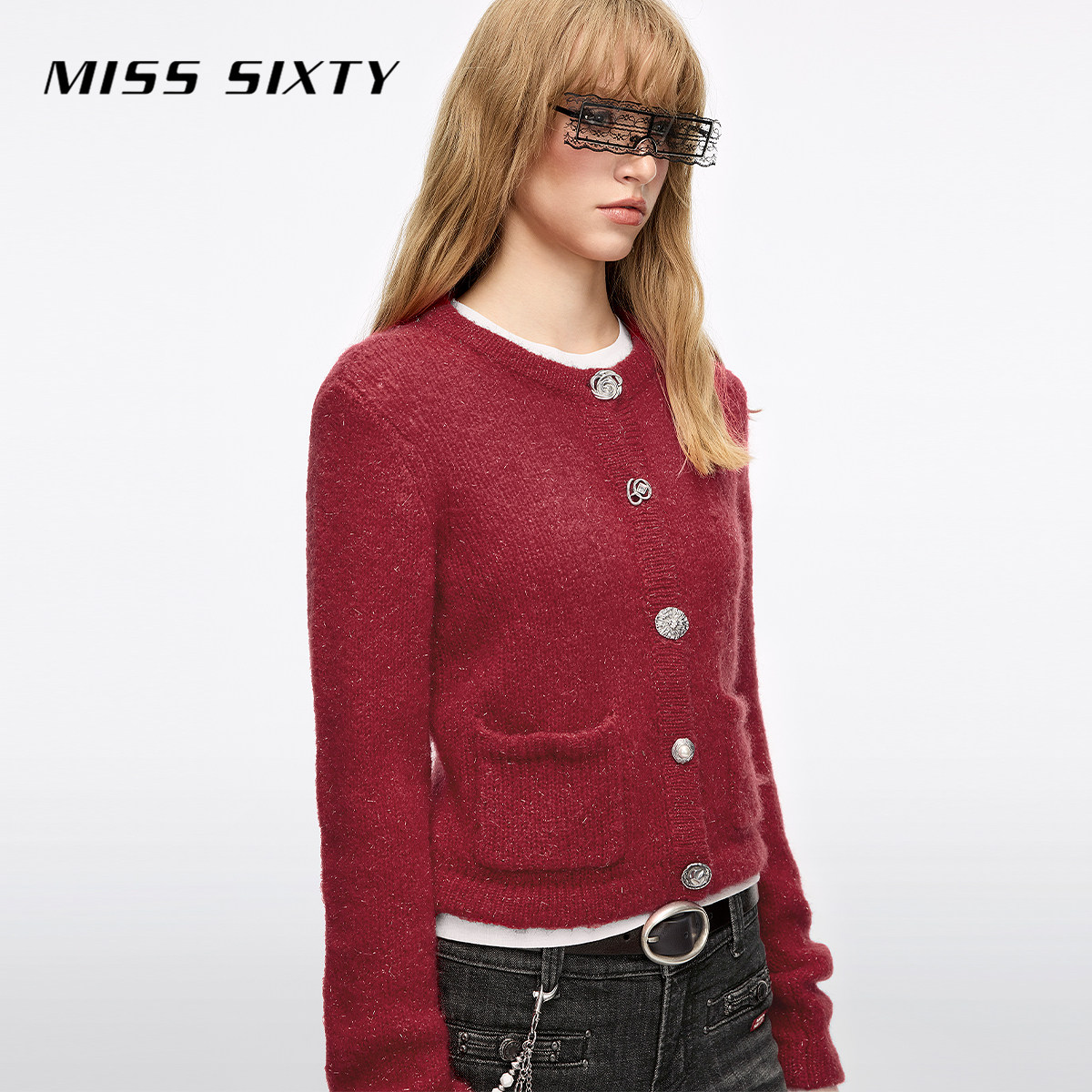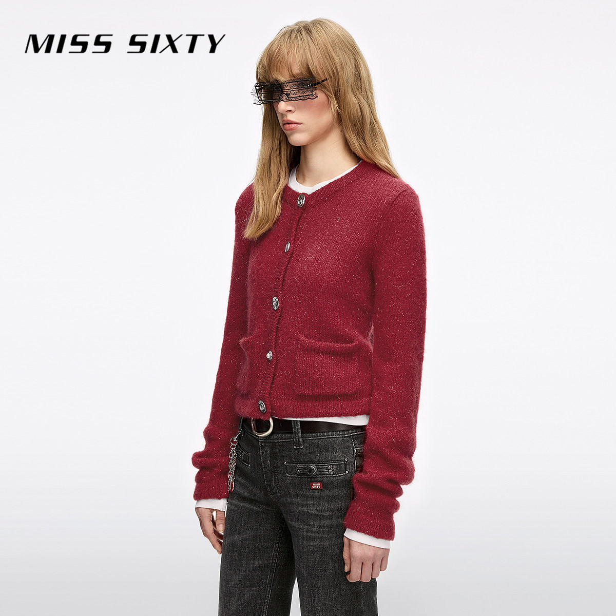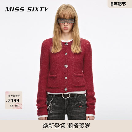 【新年穿搭】Miss Sixty2026春新款针织开衫女圆领马海毛亮丝毛衣