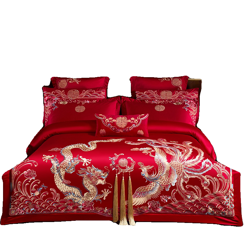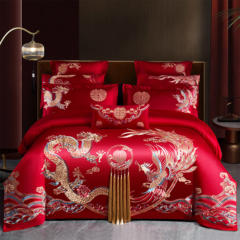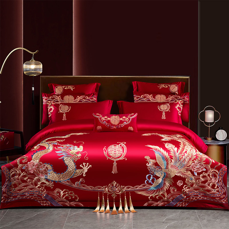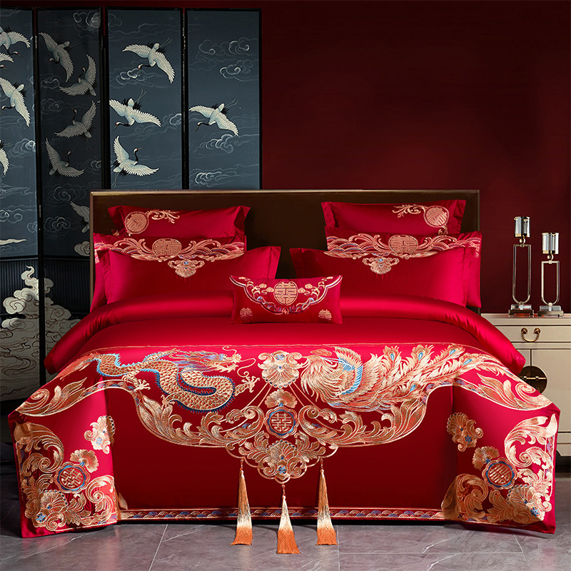 高端中式结婚四件套龙凤刺绣喜嫁床单被套六件套婚庆床上用品床笠