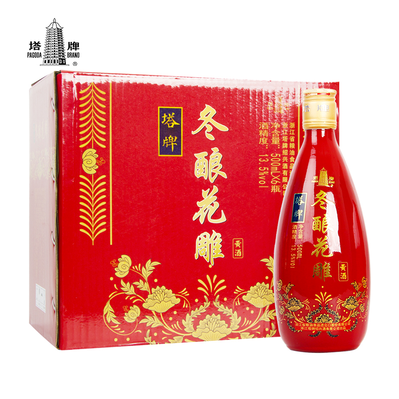 塔牌黄酒冬酿花雕酒500ml*6瓶整箱半干型手工黄酒绍兴特产加饭酒
