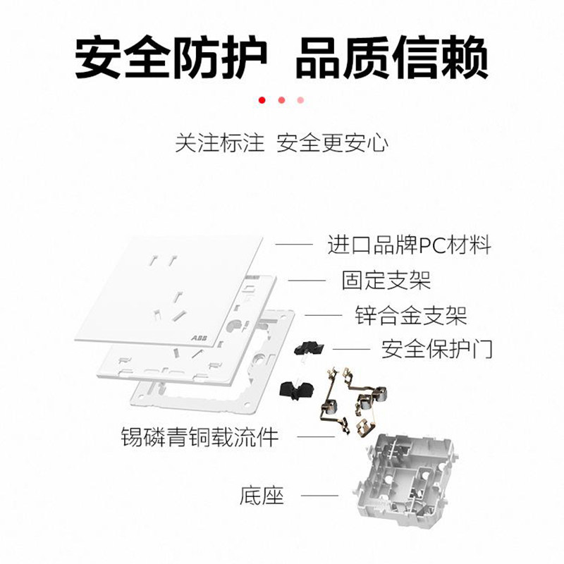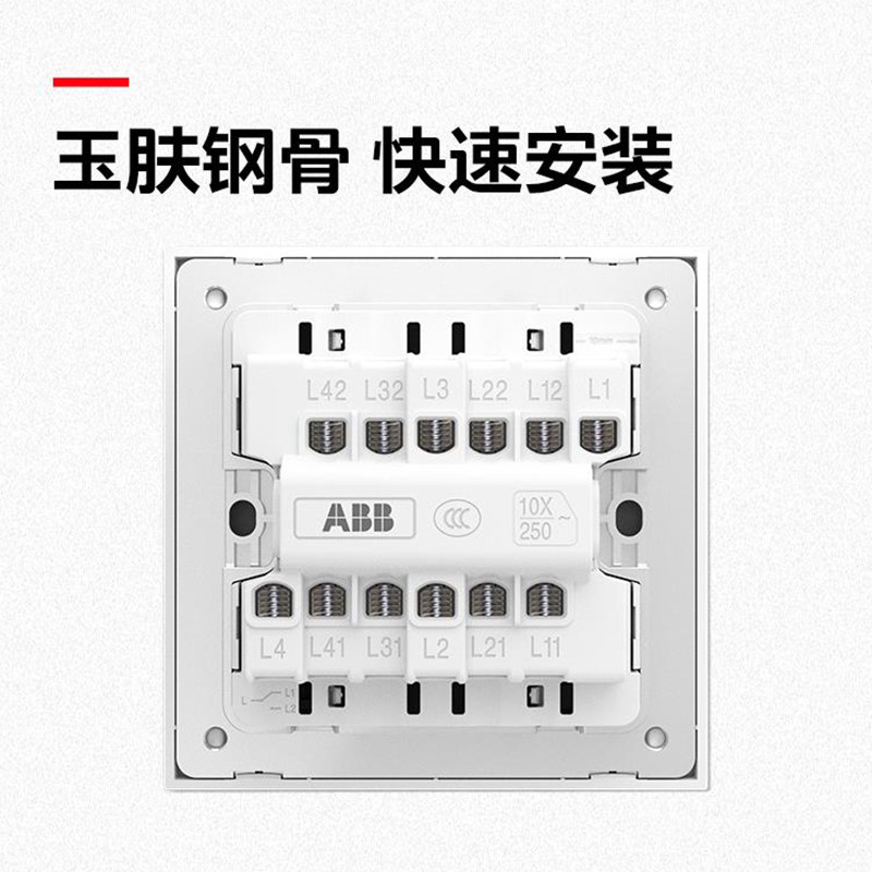 ABB开关插座轩璞玉石白色二开一开五孔超薄家用三开单控暗装套装