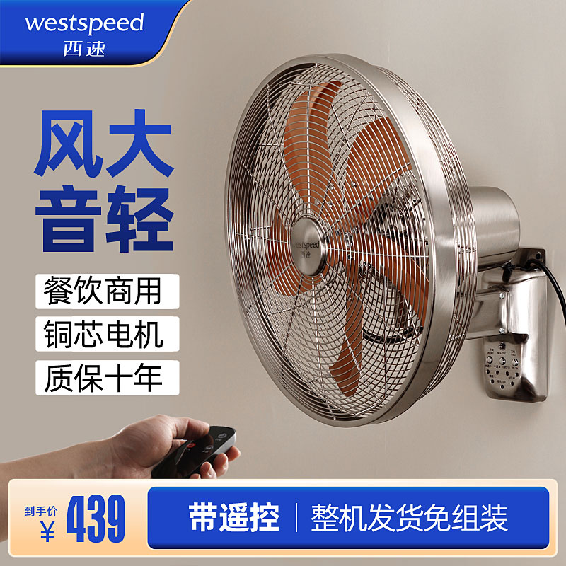 金属壁扇挂壁式商用家用仿古铁叶挂墙扇饭店咖啡厅复古强力电风扇