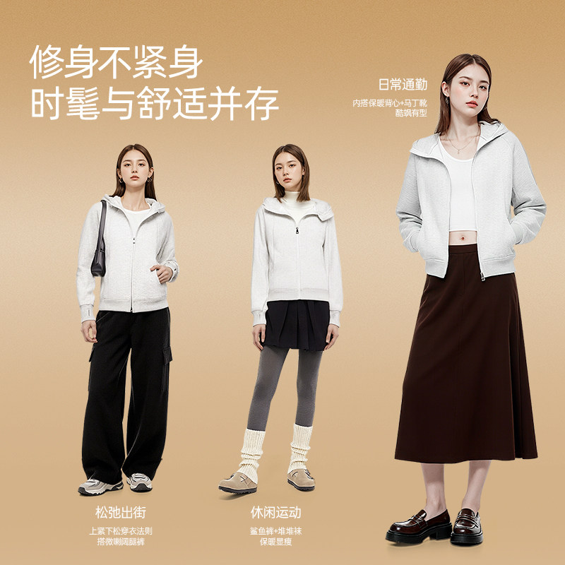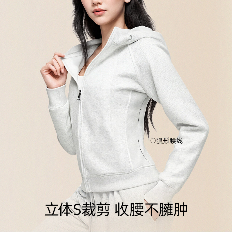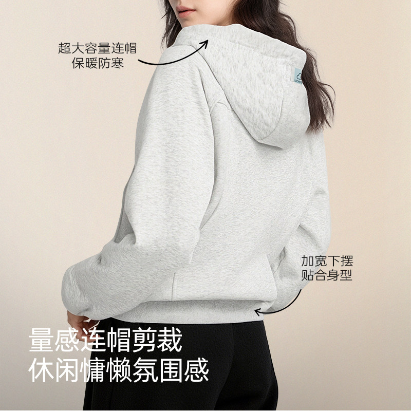 幸棉加绒修身卫衣女款2025新款秋冬加厚保暖连帽短款上衣韩系外套