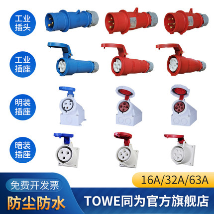 TOWE同为16A/32A工业连接器IP44工业航空插头插座暗装明装插座