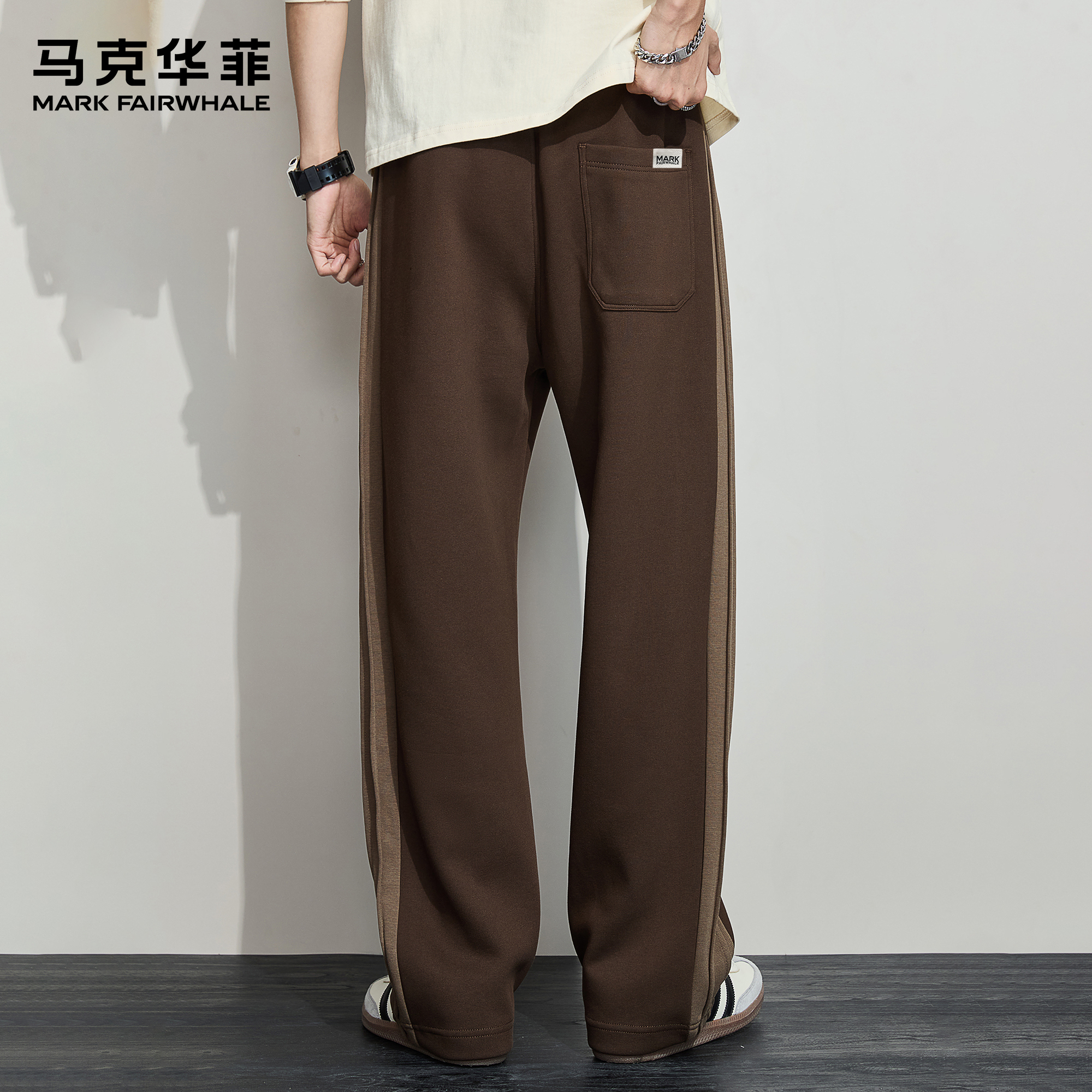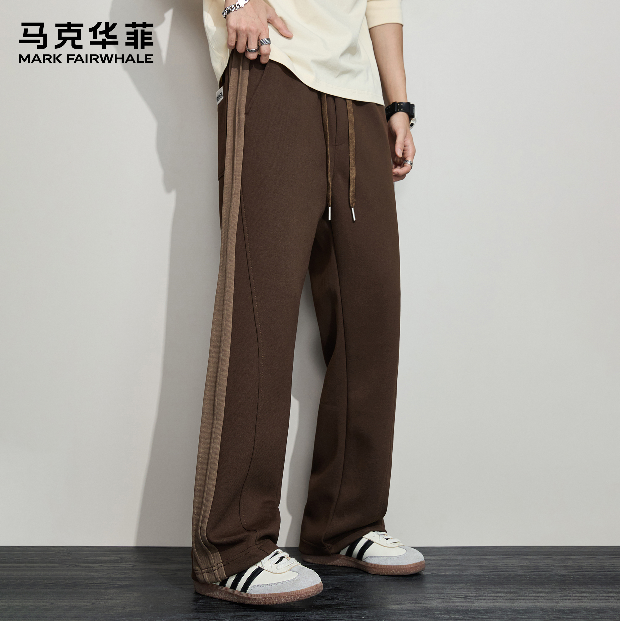 马克华菲休闲裤男秋冬潮牌ins美式复古重磅条纹宽松直筒运动卫裤