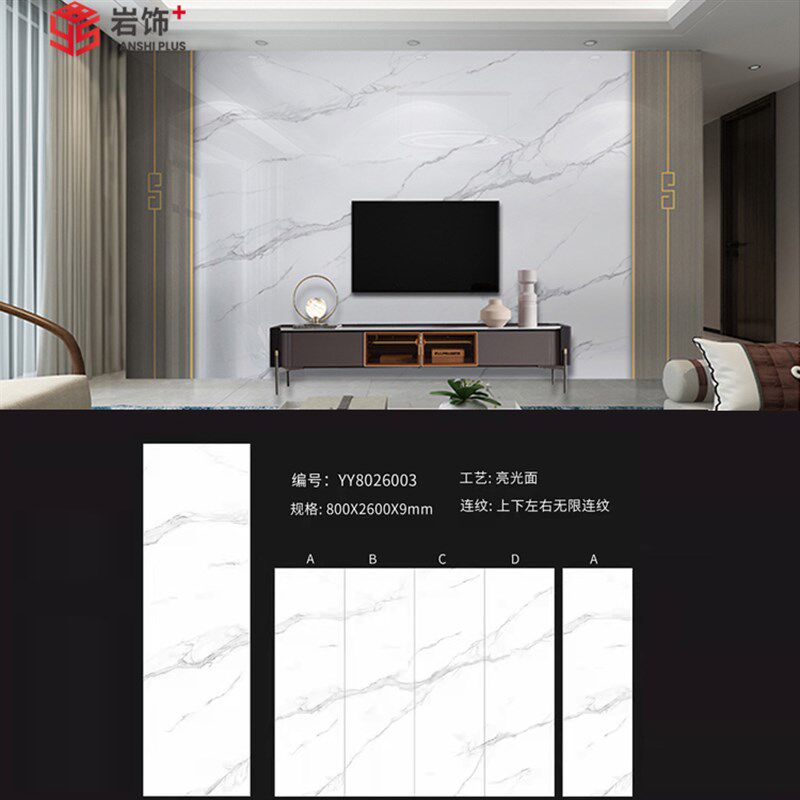 岩板电视背景墙轻奢现代简约沙发背景瓷砖全屋墙X板客厅影视墙
