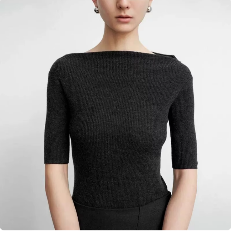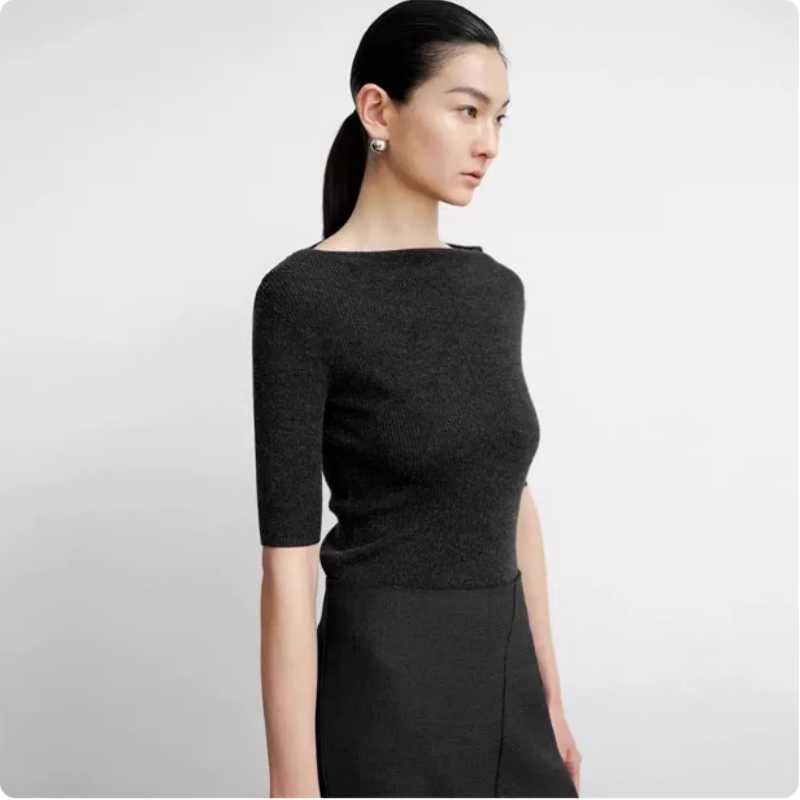 艾诺丝商场同款2025秋新款短袖针织衫女修身显瘦毛衫上衣AR803043