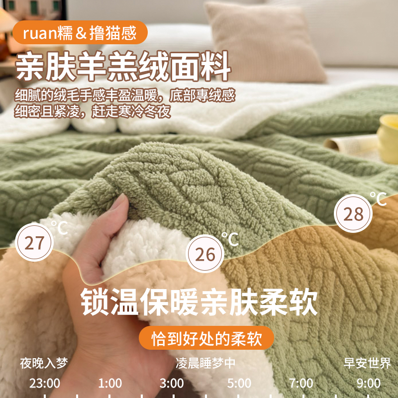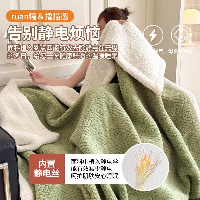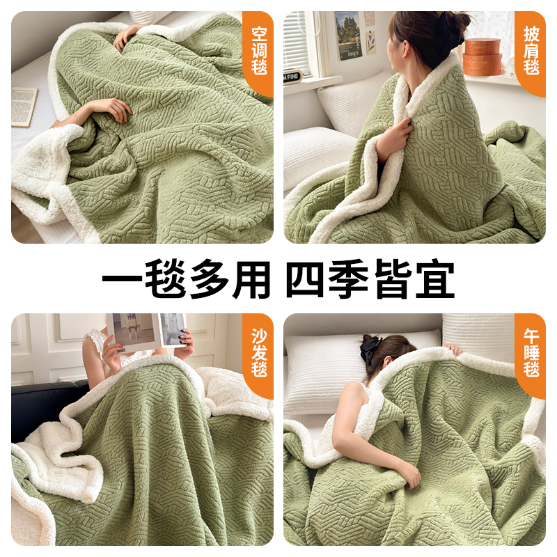 塔芙绒双面毯牛奶绒毛毯加厚冬季羊羔绒毯子办公室午睡沙发盖毯